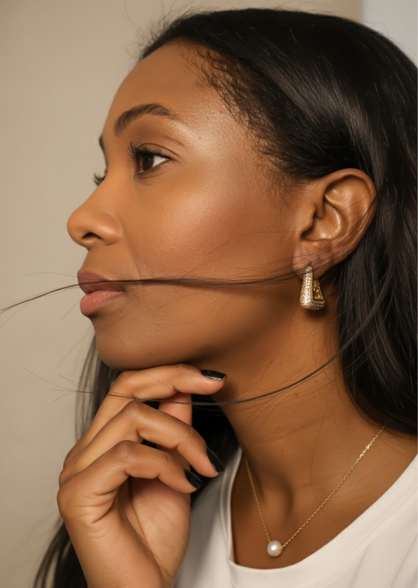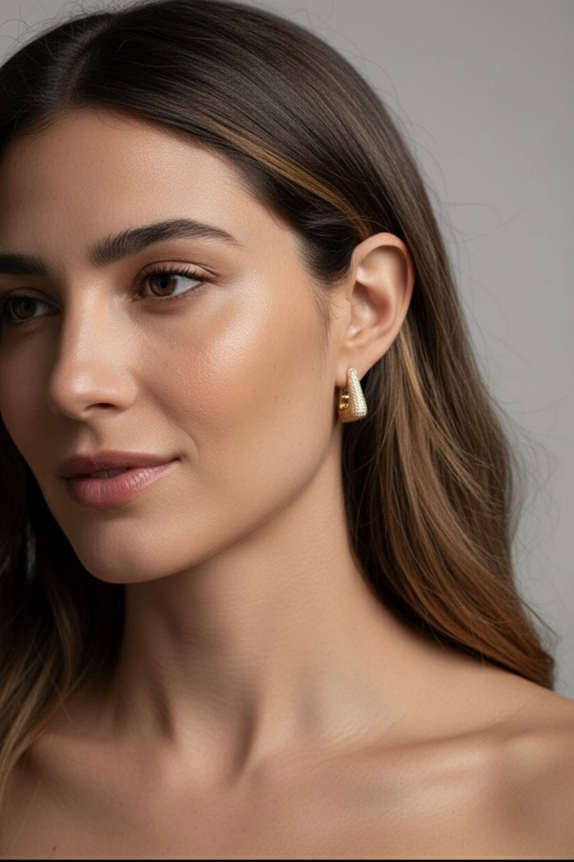 Elevate your jewelry collection with our stunning 18K gold-plated pavé earring, a masterpiece of elegance and sparkle. Designed to dazzle and enchant, this earring is crafted with meticulous attention to detail to ensure you radiate sophistication and glamour. The earring features a captivating pavé setting with meticulously placed crystals or cubic zirconia that shimmer brilliantly with every movement.